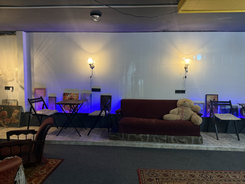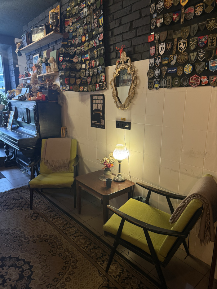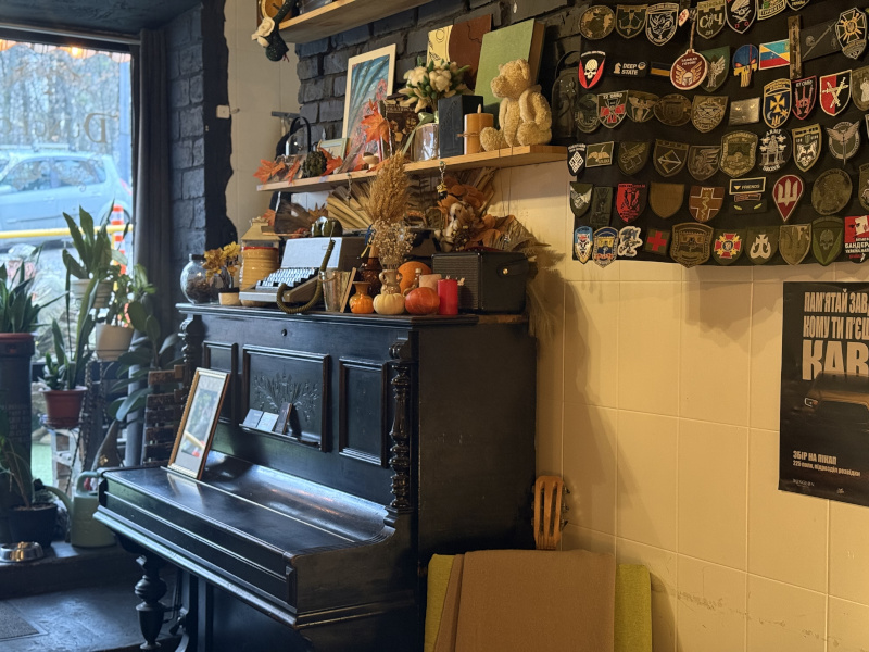 Мабуть, колись простір замислювався як артмайданчик. Однак війна внесла корективи, тепер це в першу чергу кав’ярня для військових. Вони складають чи не 90 відсотків відвідувачів. Сюди все ще заходять місцеві мешканці, а митці та гравці бувають значно рідше.