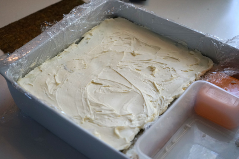 Далі треба щось зробити, щоб забезпечити вільне вилучення торта з форми. Часто зустрічаю пораду змастити дно та стінки форми олією. Мені не подобаються сторонні присмаки там, де їх, на мій погляд, не повинно бути, тому вистилаю форму харчовою плівкою.