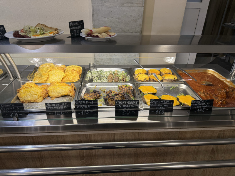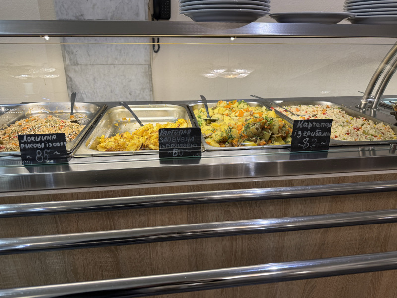 Ціни демократичні. Їжа не гаряча, а злегка тепла, дуже ситна, але в деяких стравах багато солі та оцту. Просто дуже багато.