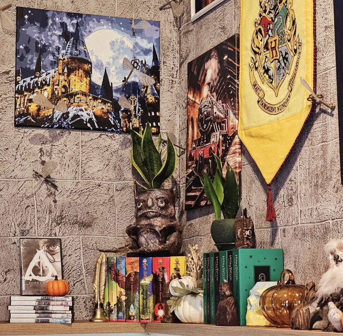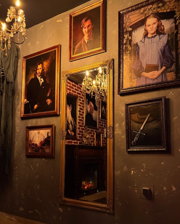 На стінах можна побачити портрети викладачів і учнів Гоґвортсу. Серед декору багато дрібниць: чарівні палички, газета «Щоденний Віщун», літаючі свічки й листи, меч Ґрифіндору та чотири дементори — Петрович (найстаріший), Пушок, Шепотун і новенький Володя. До речі, є два інших на продаж.