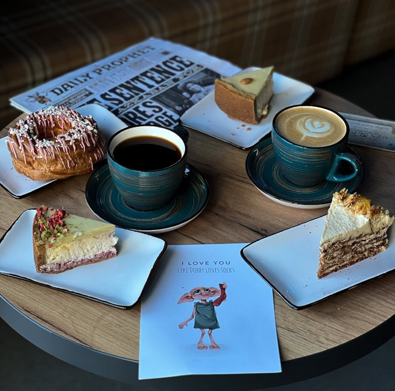 Цікава деталь: у кав’ярні можна замовити костюми з «Гаррі Поттера» для фотосесії, але про це варто домовлятися заздалегідь — щонайменше за тиждень, бо костюми зберігаються на іншій локації.