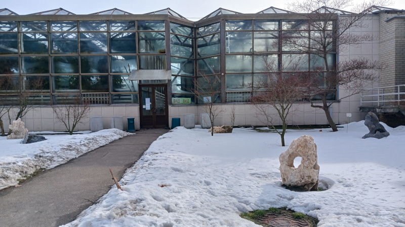 Від входу беріть трошки правіше і спускайте сходами. Побачите величезний оранжерейний комплекс, а біля входу вивіску «виставка фіалок, вхід безплатний». Так от, вам туди не треба. Принаймні не тепер.