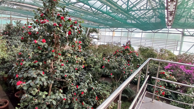 Час масового цвітіння оранжерейних азалій та камелій — зазвичай січень-середина березня. Але кажуть, що через зимові морози та вимкнення світла цього року цвітіння почалося пізніше звичайного.