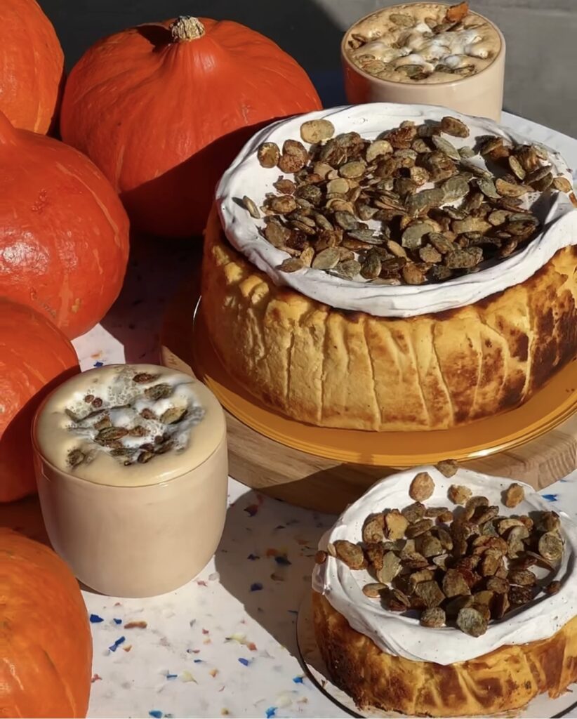 Невеликий заклад з найбільшим вибором чізкейків у Києві. Тут велика вітрина десертів і повноцінна кухня, а у залах милі розмальовки на стінах. Також можна замовити торт на виніс. Осінніх позицій небагато, але вони атмосферні.