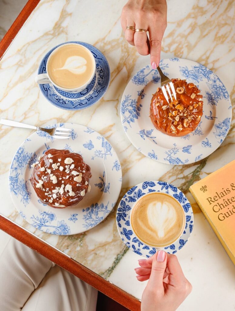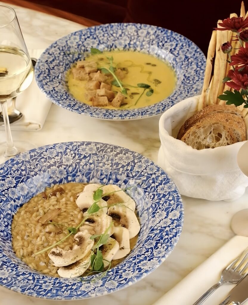 Пекарня та ресторан працюють в одному приміщенні і називають себе першою кондитерською Києва — відкрилися ще в 1995 році. Біля входу — вітрина з десертами та бариста, як у класичній кав’ярні, а далі — два ресторанні зали: один розкішний з оксамитовими відтінками та дзеркалами, інший — стриманий у нюдових тонах із м’якими меблями.