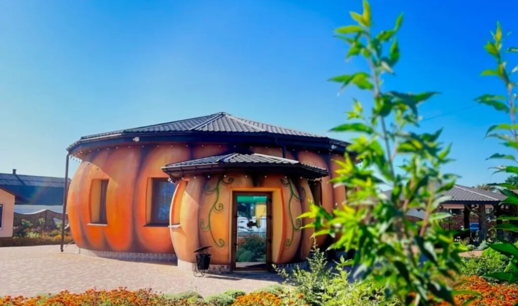 Кафе у Київській області, будівля якого має форму велетенського гарбуза. На території безліч хризантем і великі клумби. Є альтанки різного розміру, підвісні гойдалки.
