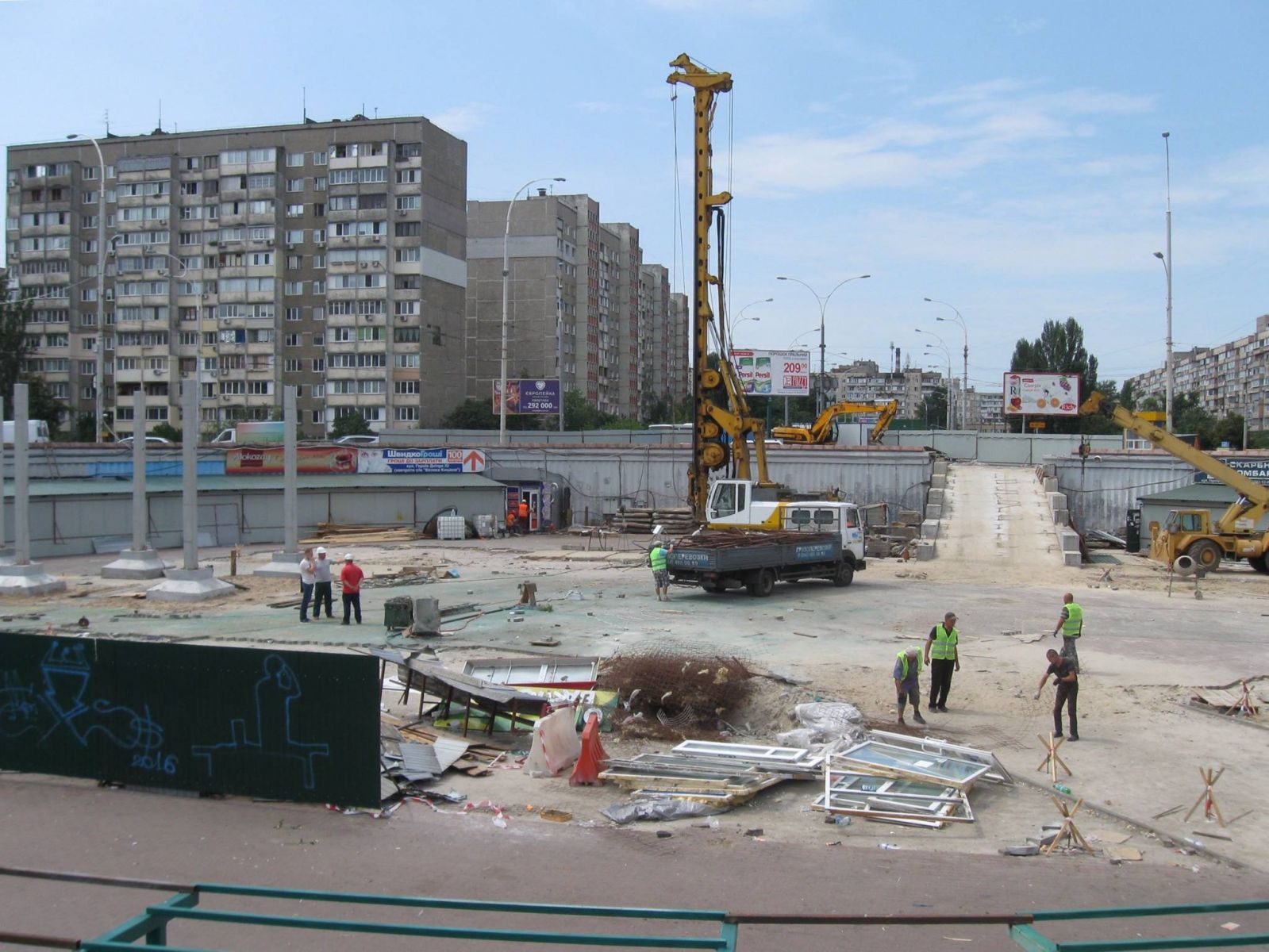Нагадаємо, роботи на ділянці розпочалися у липні цього року. Тоді було повідомлено, що на ділянці відбуватиметься зміцнення ґрунтів. Повідомлення про будівництво на цьому місці торгівельно-розважального центру з’явилося 3 серпня на виході зі станції метро.