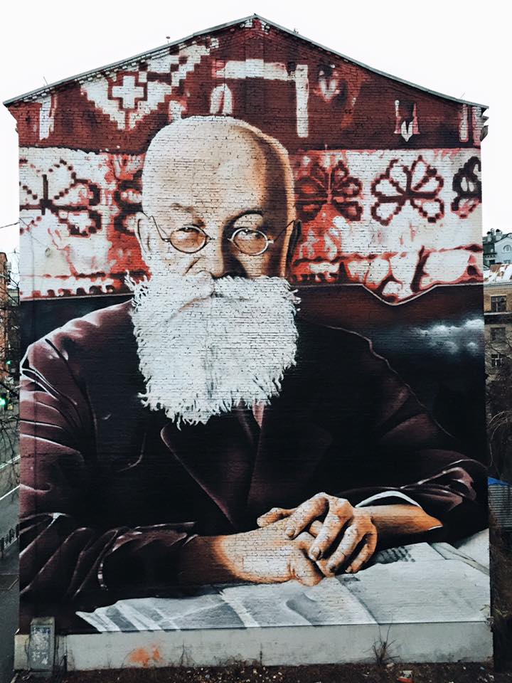 Мурал приурочен к 150-летию историка, общественного и политического деятеля. Это самый большой в мире портрет Грушевского.