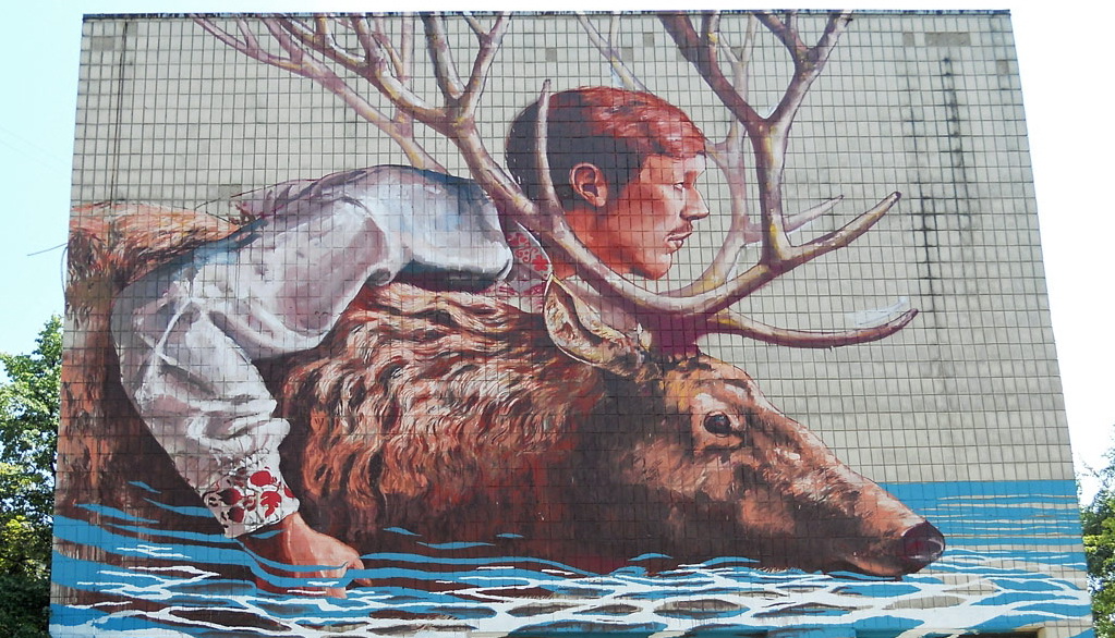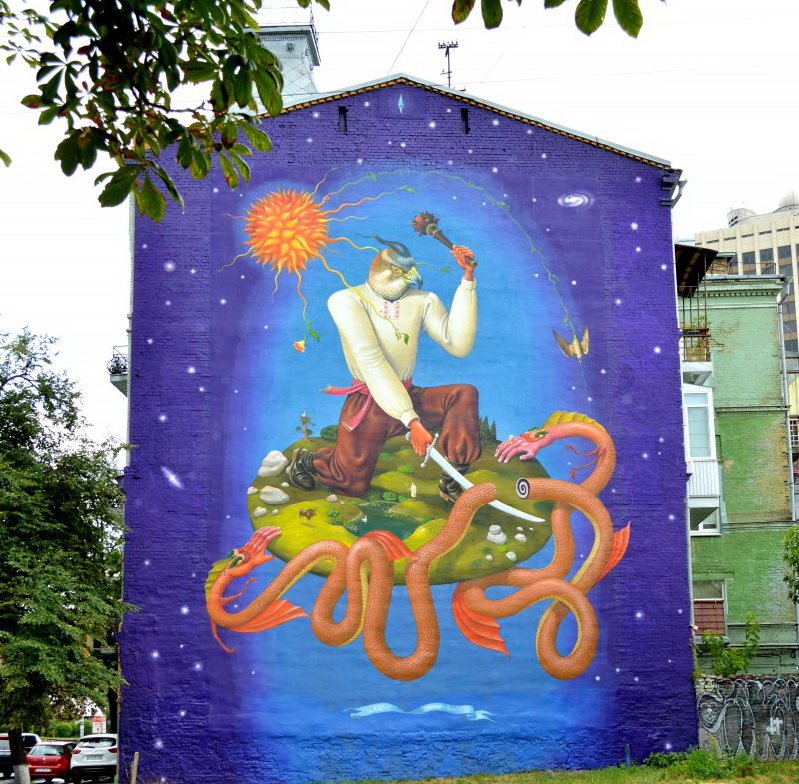 Дуэт украинских уличных художников нарисовал множество муралов как на территории Украины, так и за ее границами. В работе «Святой Юрий» авторы хотели передать свое отношение к событиям на Украине и веру в то, что все повернется в лучшую сторону.