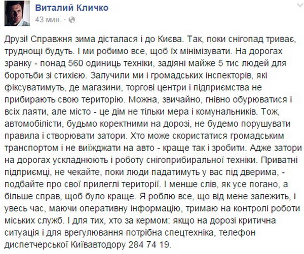 Но Кличко ответил киевлянам, чтоб те не переживали, потому что ситуация «под контролем».