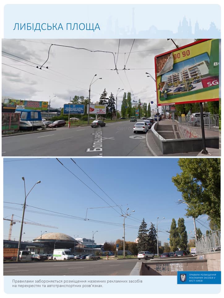 С моста Патона демонтировали 82 рекламные конструкции, на Лыбедской площади — 78.