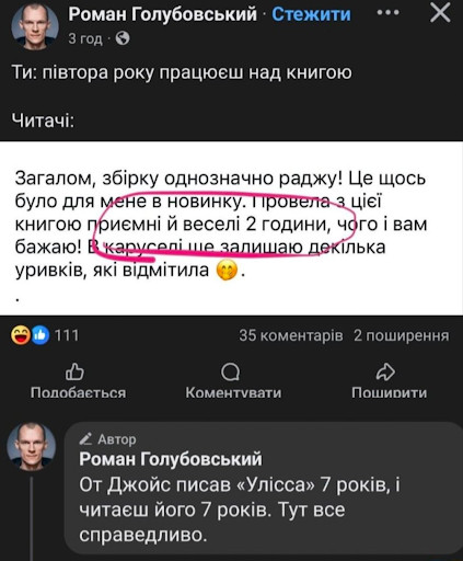 Коли я читаю книжку, то просто читаю. Коли я читаю книжку на клуб, намагаюся виділити основні думки й розмірковую, наскільки з ними згодна; знаходжу цитати, якими хочеться ділитися; порівнюю форму та сенси книги з прочитаним раніше й зі своїм життям. Це глибше розуміння.