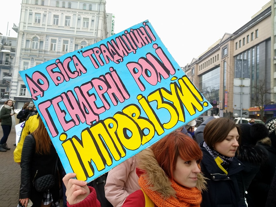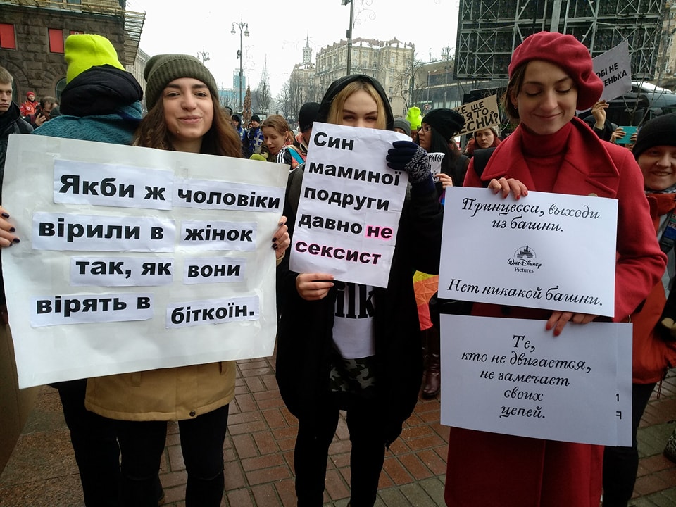 Жизненная сценка, выхваченная из Марша за права женщин явно отражает нынешнюю ситуацию с равенством полов в Украине. С 1909 года, когда марш за права женщин прошел впервые, мы получили избирательное право, возможность наследовать имущество, разводиться, работать и многие другие права. Несмотря на это, Украина все еще пасет задних среди стран с гендерным равенством: женщины реже занимают высокооплачиваемые и руководящие должности, они мало представлены в правительстве и исполнительной власти.