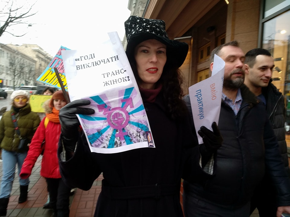 Трансгендерные женщины прошлись с плакатами о том, что их мнение пора учитывать как женское.
