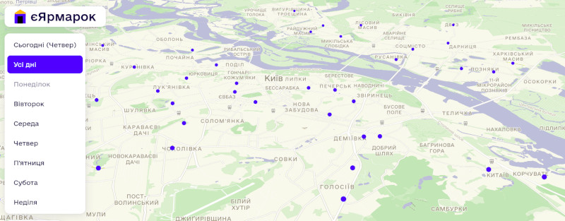 Запустили інтерактивну мапу з локаціями фермерських ярмарків у різних локаціях міста. Розробники кажуть, що на ній можна: