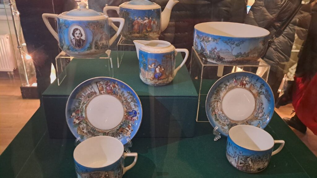Перлина експозиції — єдиний екземпляр чайного сервізу з розписом за мотивами повісті Миколи Гоголя «Майська ніч». Його в 1950 році створила майстриня Марія Першина. Сервіз придбав Національний музей історії України за шалену суму — 600 рублів.