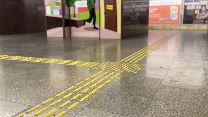 На станціях метро «Олімпійська», «Театральна» та «Палац спорту» нанесли тактильні смуги, які допомагають краще та безпечніше орієнтуватися у просторі пасажирам із порушеннями зору. Це зробили методом холодного пластику: тактильні індикатори наносяться без втручання в гранітне покриття і є більш економічним, ніж тактильні плитки.
