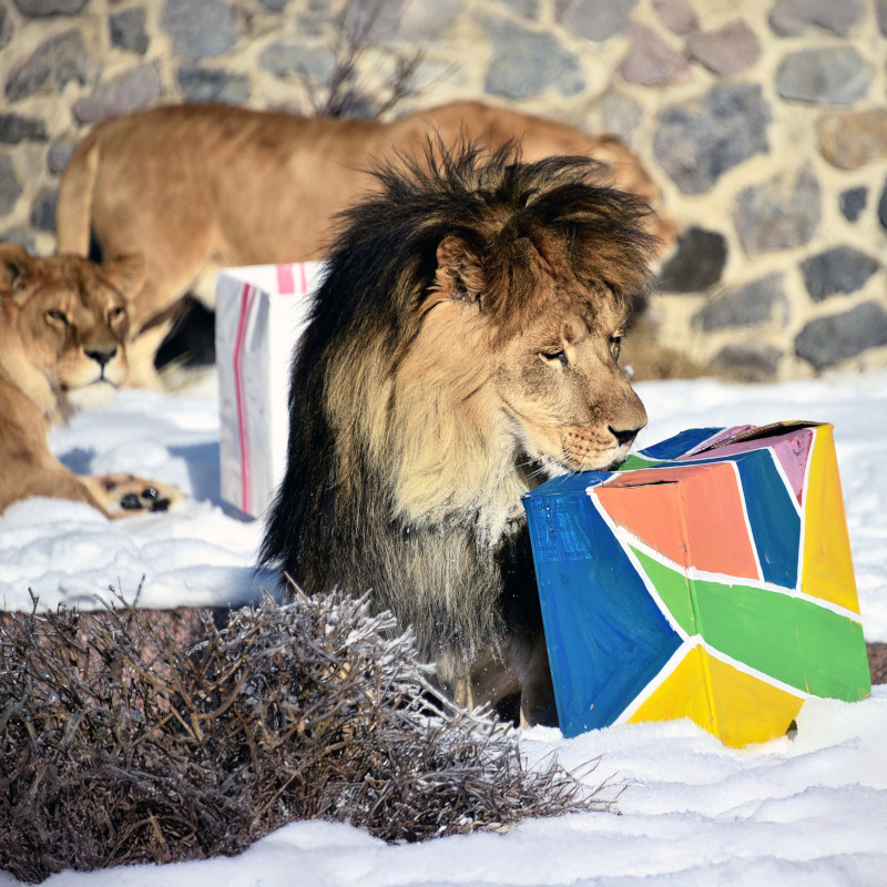 За майже два десятиліття життя у зоопарку леви чудово адаптувалися до місцевого клімату. Вони навіть наростили теплий підшерсток і з задоволенням гуляють при температурі до -10°С, кажуть у зоопарку. Аби постійно підтримувати їх у гарній формі, фахівці проводять різноманітні заходи зі збагачення середовища. Тоді леви залазять на дерева та колоди, вишукують серед м’ясні смаколики у сховках, долають спеціально створені перешкоди, розгризають пенькові мотузки та розгризають джутові мішки, розбирають коробки та солом’яні опудала.