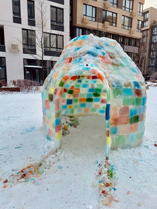 Після створення різнокольорового іглу у Львові схожий заморожений будиночок зробили й у Києві, у ЖК «Файна Таун».