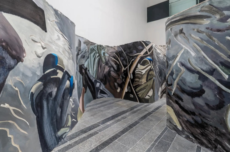 На залізничному вокзалі представили інсталяцію «Бій в окопі» мисткині Лесі Хоменко. Це 30-метрове полотно у формі траншеї, під час огляду якого глядачі опиняються всередині «окопу». Архітектурну форму роботи мисткиня змоделювала на основі відео з натільної камери військового Третьої штурмової бригади.
