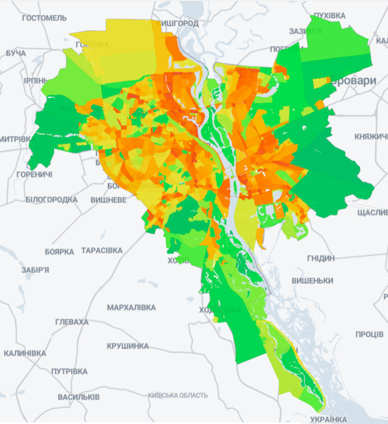 Нижче в рейтингу — Дніпровський (37%), Оболонський і Дарницький (по 33%). Найменший рівень озеленення серед районів у Деснянському — 32%.