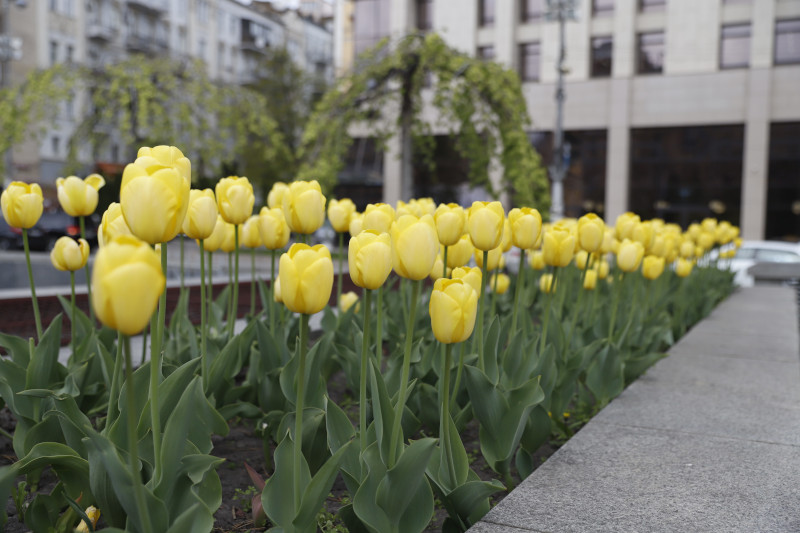 Розпочався сезон цвітіння тюльпанів, зокрема висаджених з цибулин, які Київ отримав у подарунок від нідерландських компаній Smit Flowers та Flower Planet за сприяння консульства України в Нідерландах.