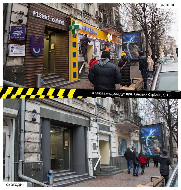 По вулиці Січових стрільців демонтували незаконні вивіски, під якими опинилися дві дошки «памʼятка архітектури». Загалом протягом листопада у місті демонтували 1451 незаконний рекламний засіб.