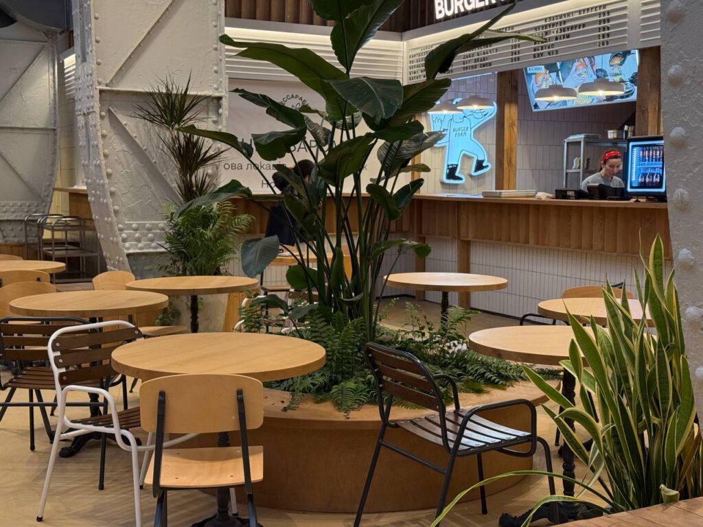Запрацювали 14 закладів. Їх називають корнерами. Представлені грузинська, українська, італійська, грецька кухня, їжа від борщів до десертів. По центру — бар.