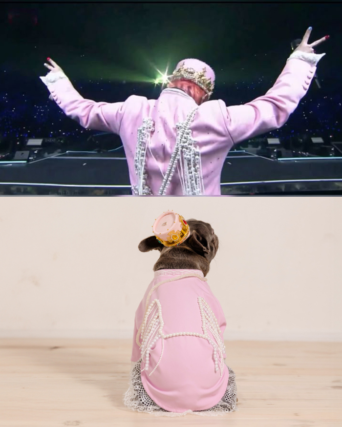Я переглядаю багато фотосесій інших собак. В Україні більшість з них — це собаки без костюмів (ми між собою називаємо їх «голими» фотосесіями). За кордоном багато фото в костюмах «з Алієкспреса». Фотосесії в оригінальному одязі не такі часті, тому служать натхненням.