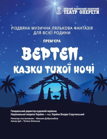 50 хвилин різдвяної лялькової фантазії. Подорож до обрядів та звичаїв, зрозуміле щире справжнє Різдво наших предків. Будуть Вертеп, колядки та щедрівки, дідух, Коза та Маланка. І чудова історія народження Різдвяної зірки.
