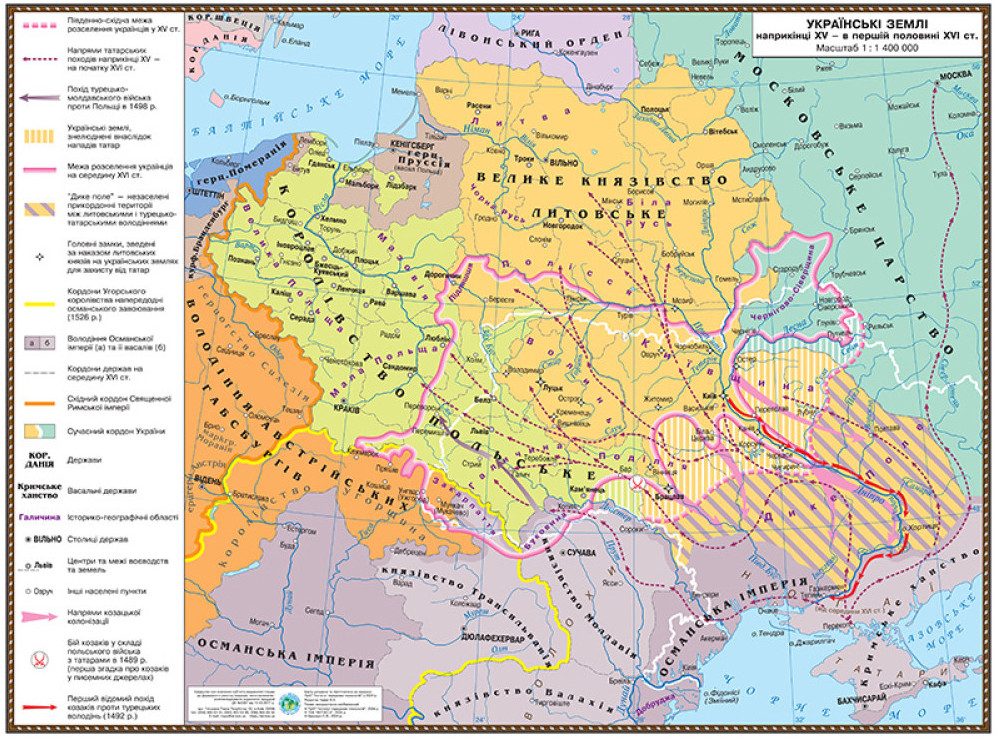 А слово «козаки» з’явилося вже в листуванні кримського хана та князя литовського в 1492-му. Тоді кримський хан жалівся на киян і черкасців, які захопили татарський корабель під Тягинею (тепер район Бериславщині на Херсонщині). Як бачимо, варто було киянам піти в похід — і хан одразу згадав про мир і добросусідство. Та головне, що саме 1492 рік заведено вважати першою офіційною письмовою згадкою про козацтво.