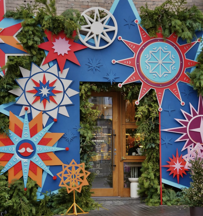 Локація, яка цього року вразила осінніми декораціями, вражатиме й зимовими. Фасад прикрасили різдвяними зірками та ялинковим гіллям, а поруч розставили маленькі підсвічені ялинки. У меню також додали круасан у формі ялинки.
