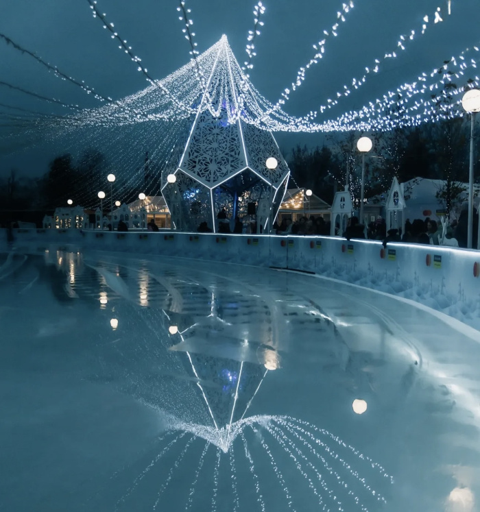 Тут працює «Ice&Light» — це невелика ковзанка з новорічними світовими декораціями навколо: оленями, сніжинками, подарунками та ялинкою. Над ковзанкою повісили гірлянду в патріотичних кольорах. Поруч є фудкорт, де можна зігрітися.