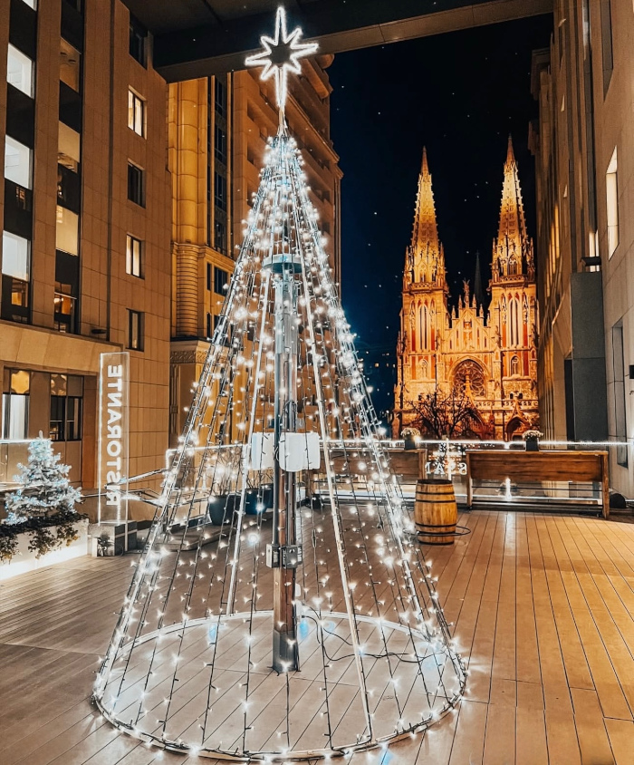 Різдвяна зірка, космічна ялинка, рожеві ведмеді та сині баранці. Де шукати святковий настрій у столиці? Разом із читачами Вікенд склав список цікавих локацій — від фасадів ресторанів до справжніх зимових містечок.