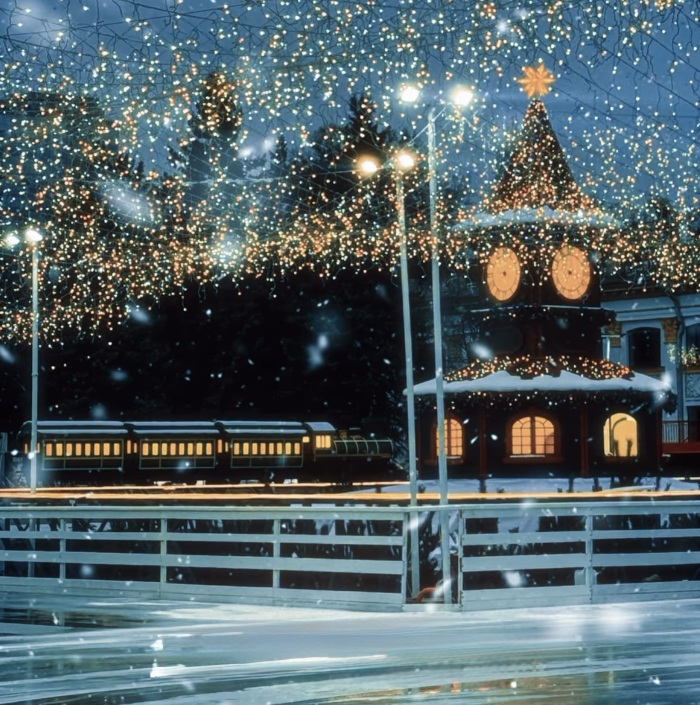 Ковзанка. Велика льодова арена, у центрі якої стоїть казкова годинникова вежа. Над усією зоною натягнуті гірлянди. Поруч — головна ялинка локації. Графік: щодня до 21:00. Ціна: 300 гривень. Катання погодинне.