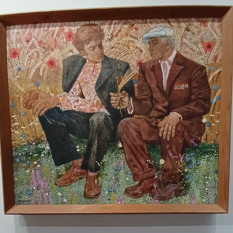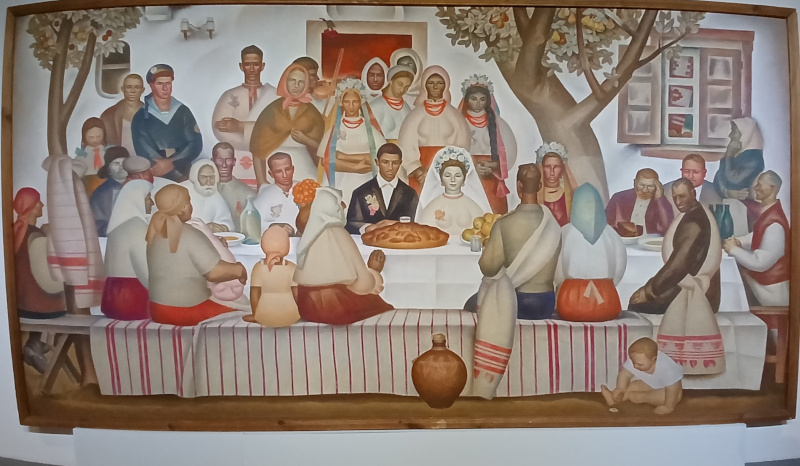 Музей декоративного мистецтва надав для виставки повні урочисті костюми з сільського весілля Київщини. Поряд картина «Весілля» Задорожного з Кмитівського музею. Між музейними костюмами та сюжетом картини розліт вочевидь років 50-60, але як цікаво знаходити спільне!