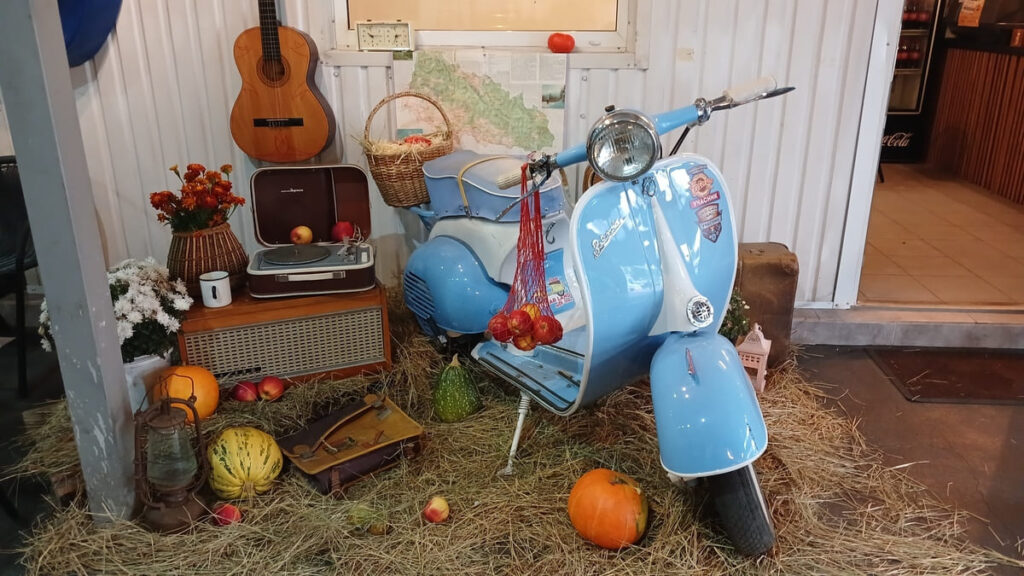 Там же облаштовані різні зони. Наприклад, куточок ностальгії з радянськими килимом, меблевим гарнітуром, посудом, технікою.