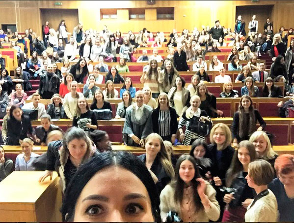 На втором году учебы начала чувствовать себя в универе, как дома. И вот тот неловкий момент, когда приходишь на пары с небрежным пучком вместо стильной прически, ненакрашенная, в растянутом, удобном свитере и любимых потертых джинсах: кажется, в такую осеннюю погоду самое оно, не хватает только клетчатого пледа. А тут встреча с Машей Ефросининой, звездой укранского телевидения.