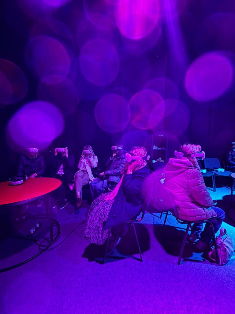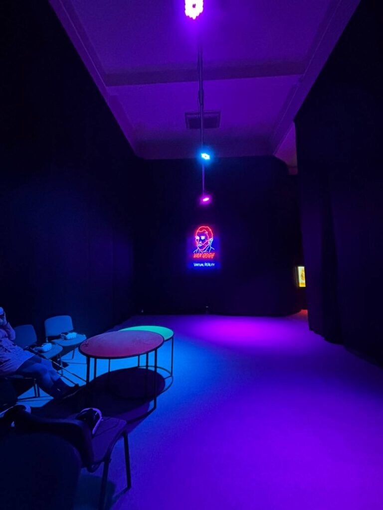 У VR-зоні сідаєш на стілець, вдягаєш окуляри й потрапляєш до дивного світу, наповненого рухом, світлом і кольорами Ван Гога. Враження надзвичайно яскраві.