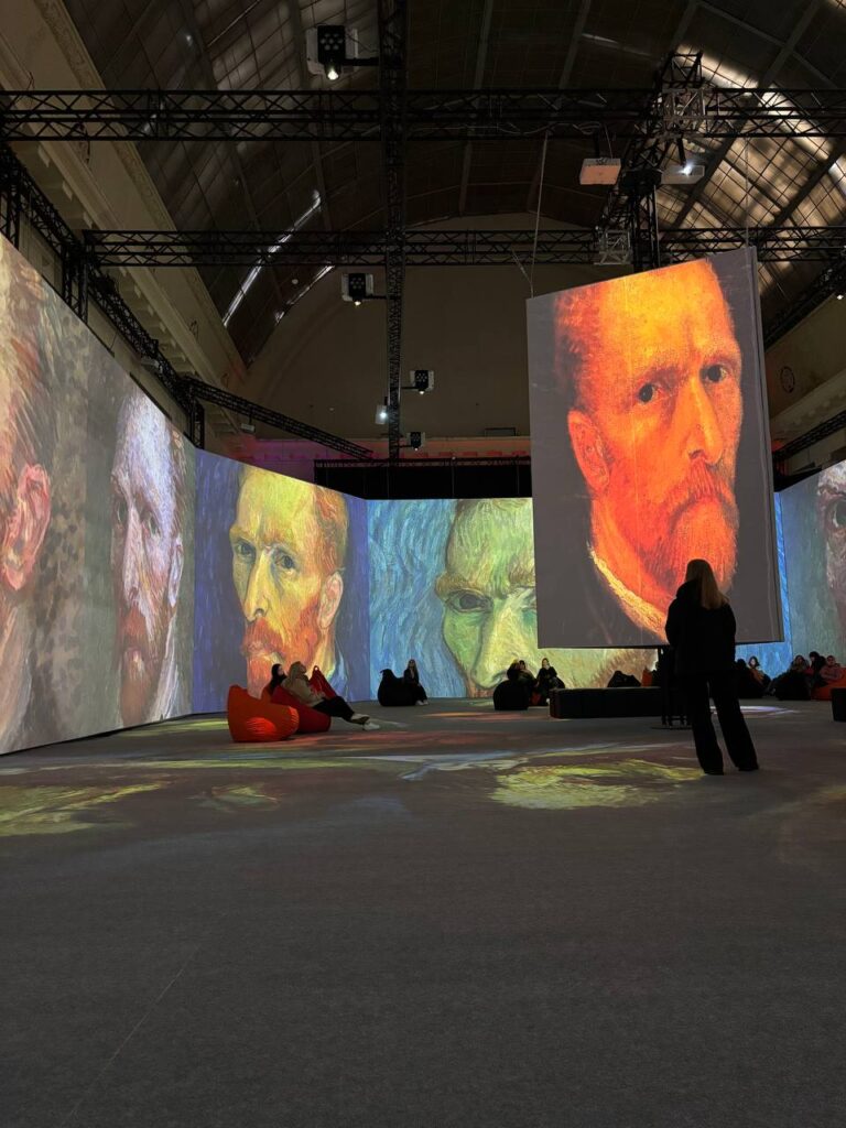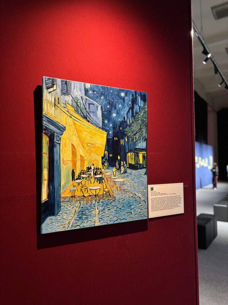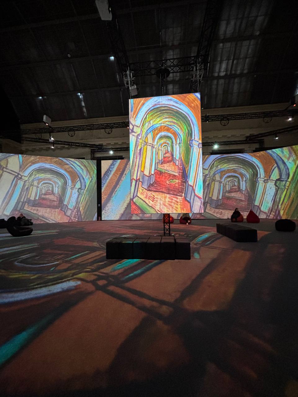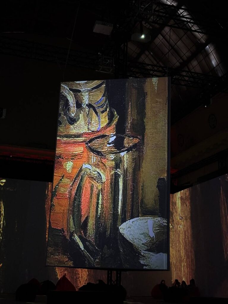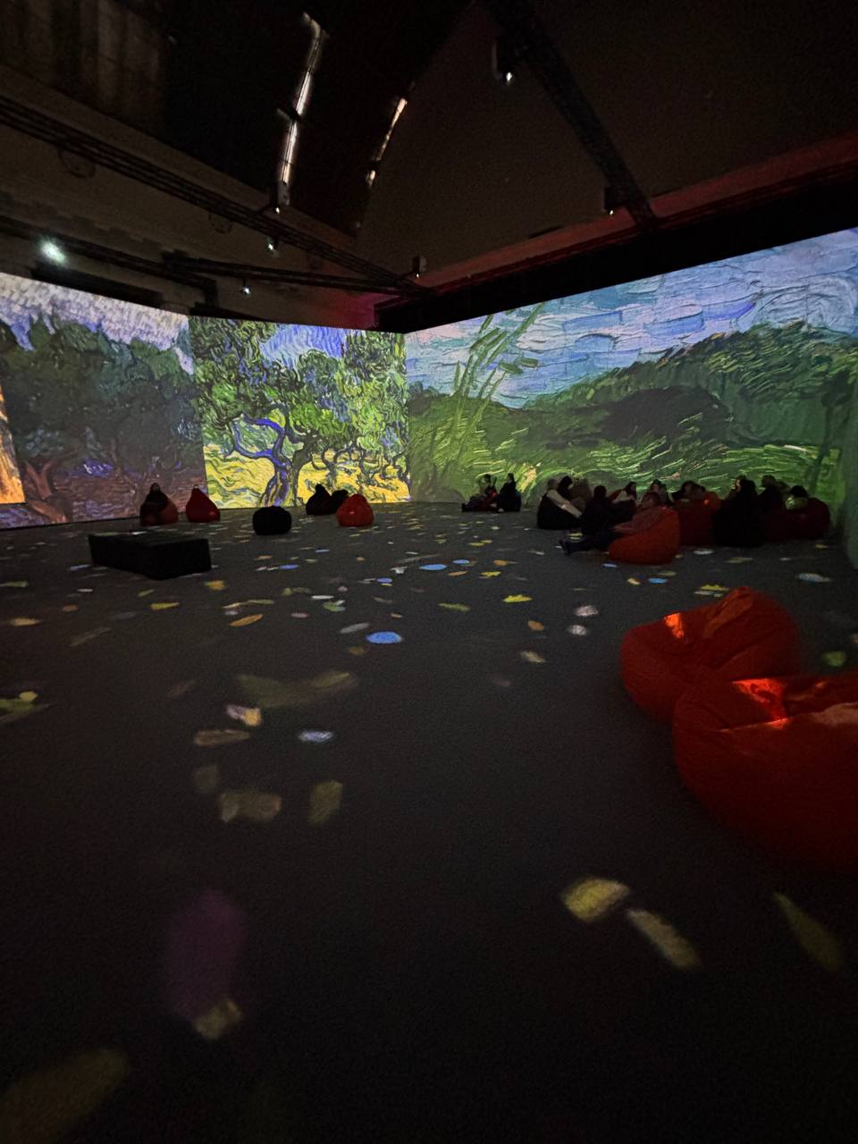 Виставка імерсивна, що з англійської означає «занурення». Ми наче потрапляємо в змодельовану реальність. У великій залі можна розташуватися на пуфах чи кріслах-мішках і спостерігати, як на стінах та підлозі відтворюються вангогівські картини. Все це під музику та цитати з листів до Тео. Цікавий, навіть медитативний досвід.