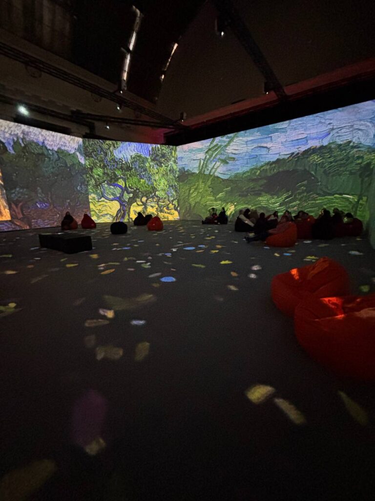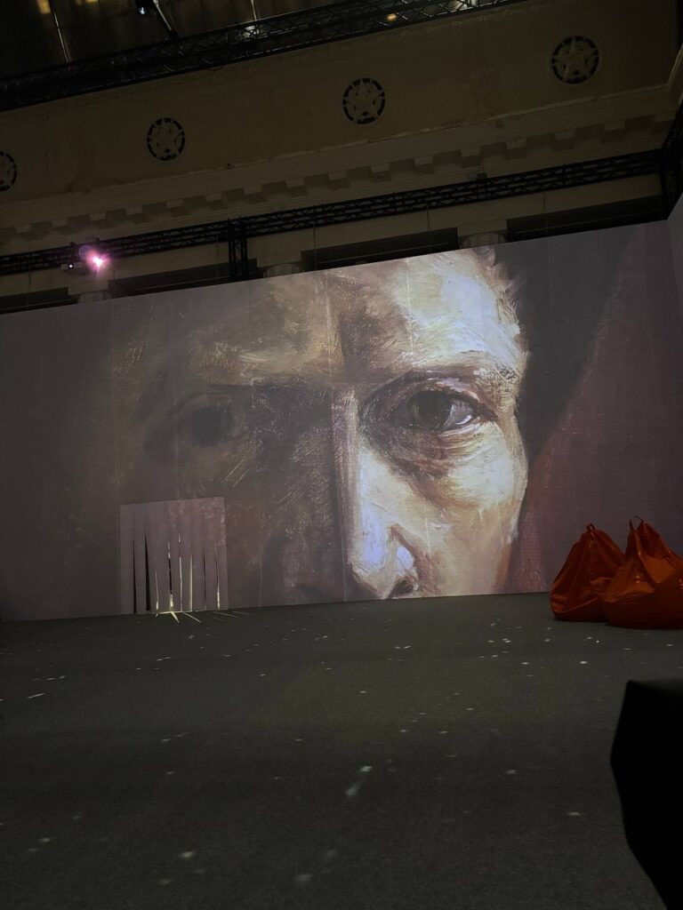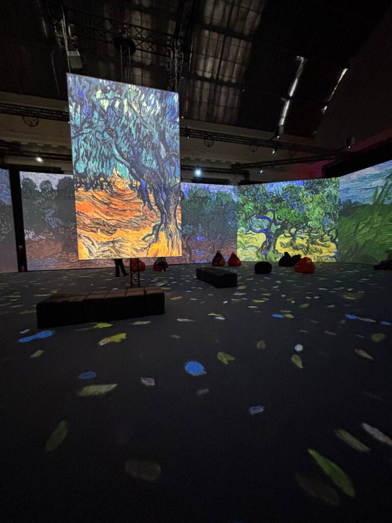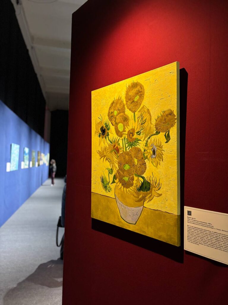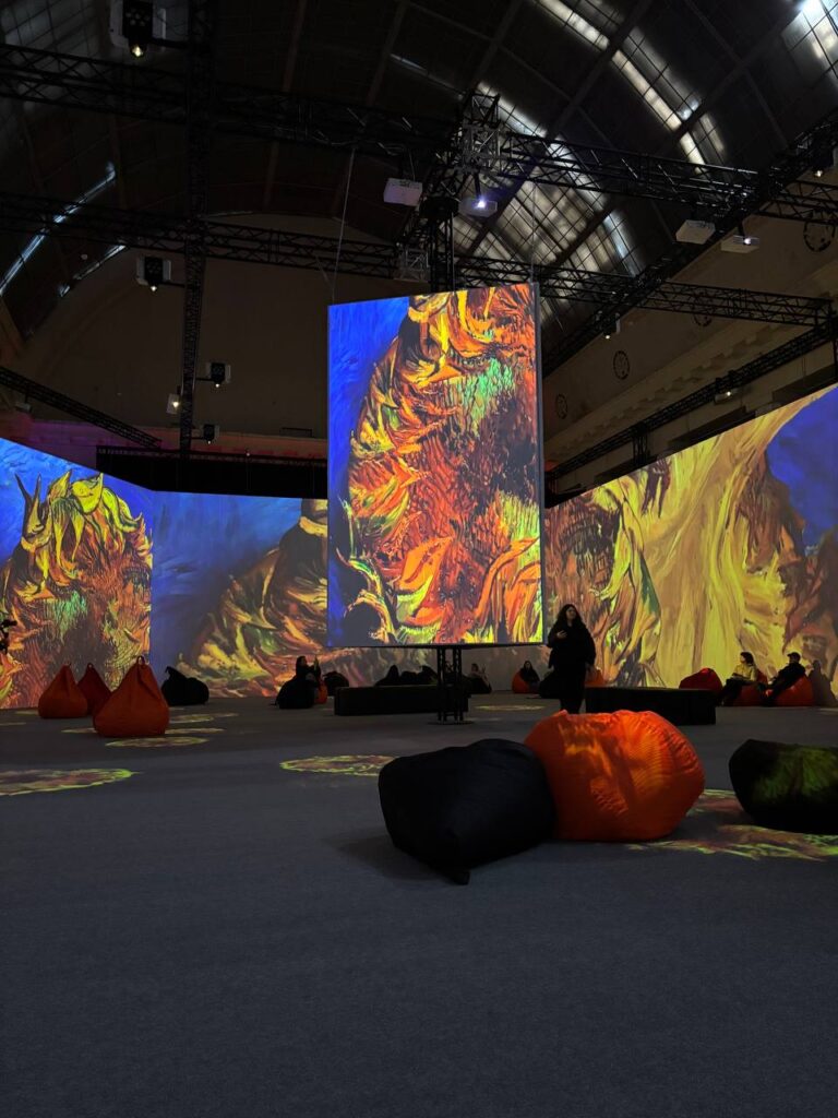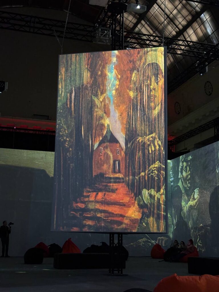 Виставка імерсивна, що з англійської означає «занурення». Ми наче потрапляємо в змодельовану реальність. У великій залі можна розташуватися на пуфах чи кріслах-мішках і спостерігати, як на стінах та підлозі відтворюються вангогівські картини. Все це під музику та цитати з листів до Тео. Цікавий, навіть медитативний досвід.