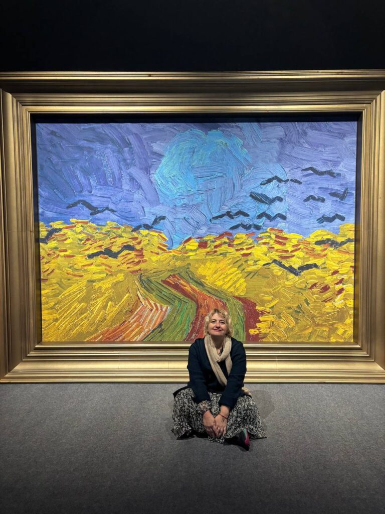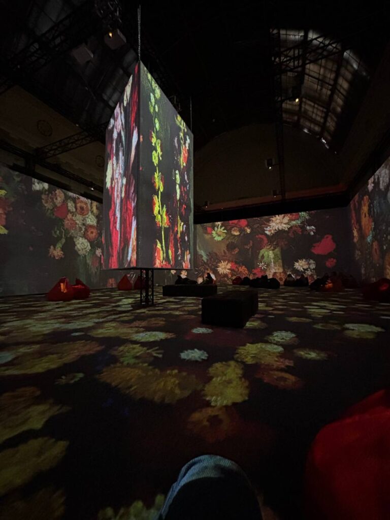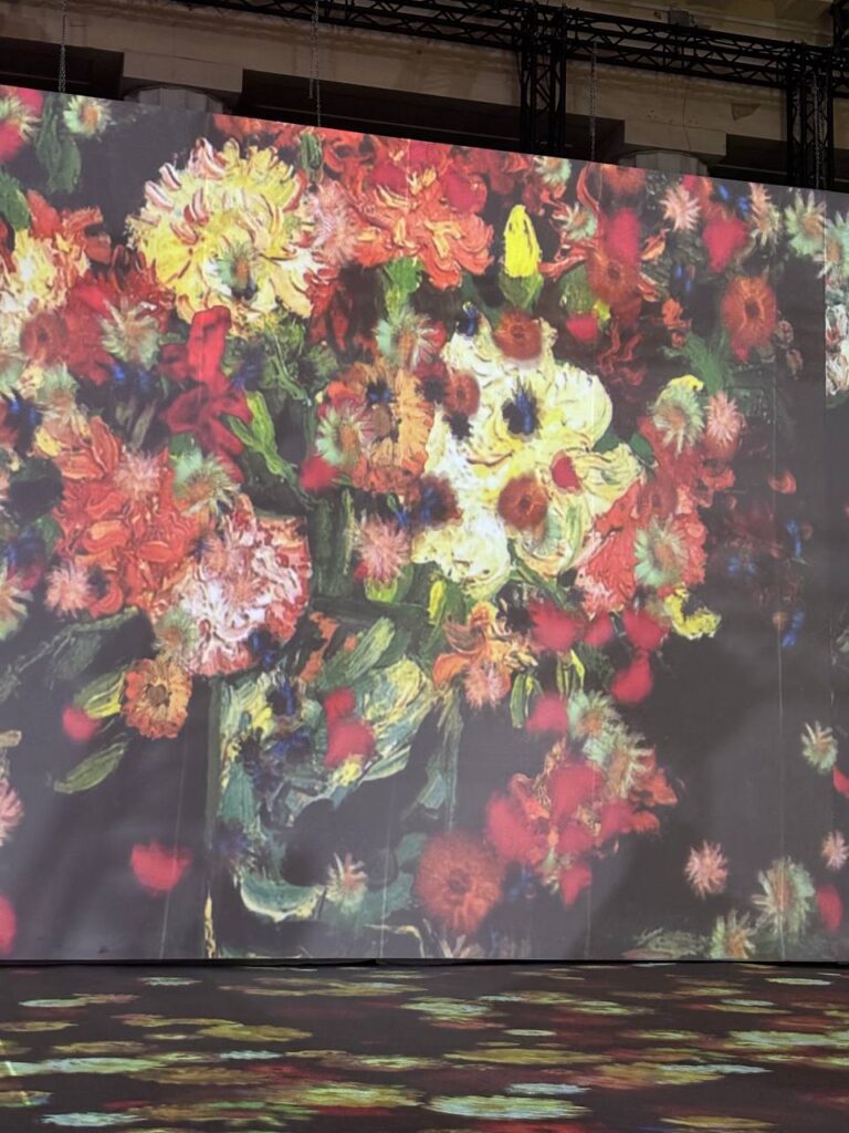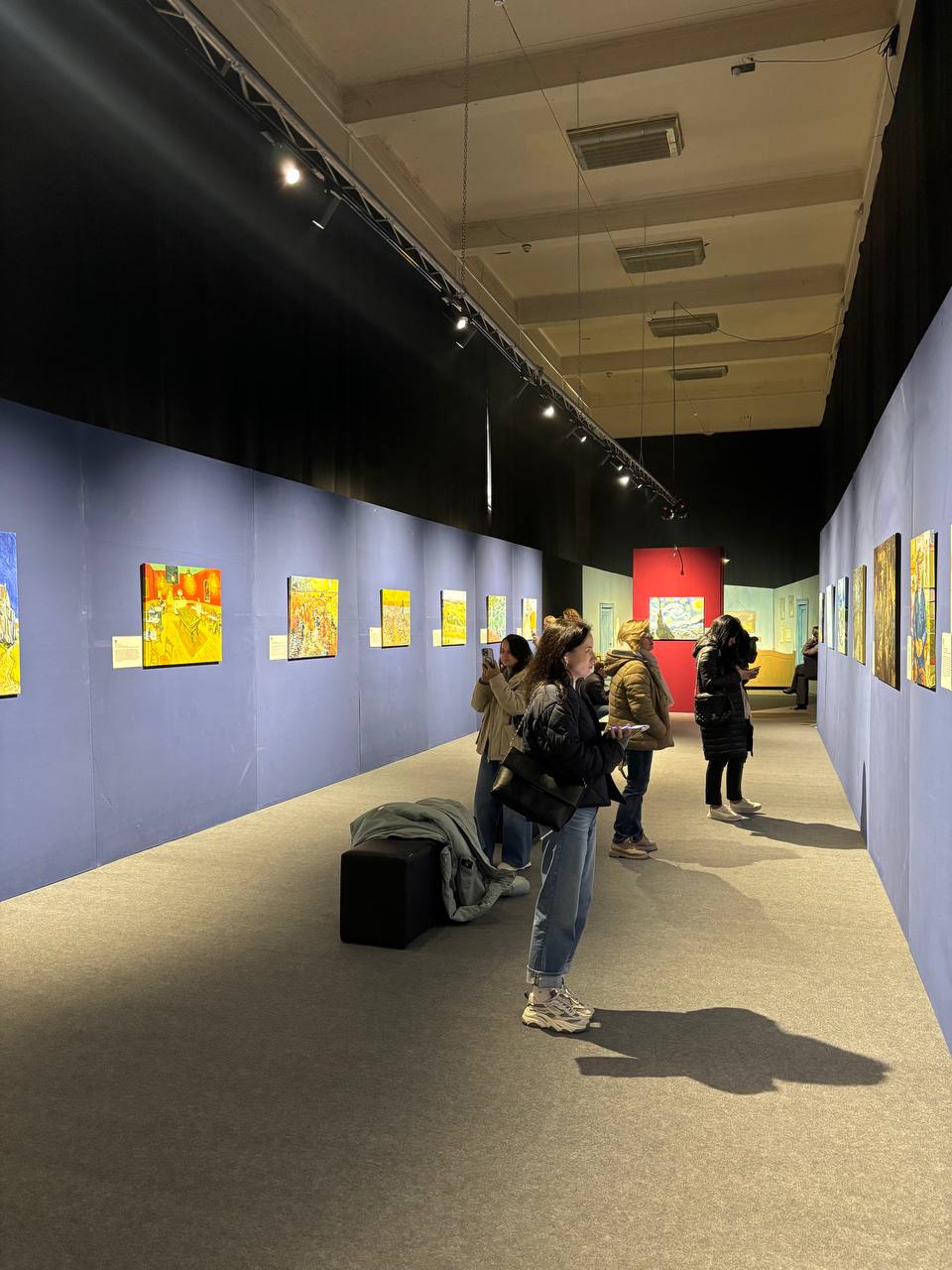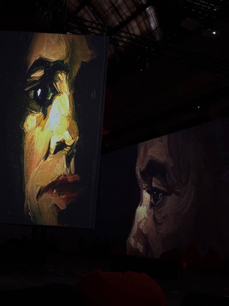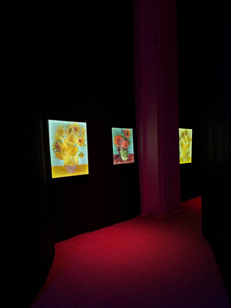 Виставка імерсивна, що з англійської означає «занурення». Ми наче потрапляємо в змодельовану реальність. У великій залі можна розташуватися на пуфах чи кріслах-мішках і спостерігати, як на стінах та підлозі відтворюються вангогівські картини. Все це під музику та цитати з листів до Тео. Цікавий, навіть медитативний досвід.
