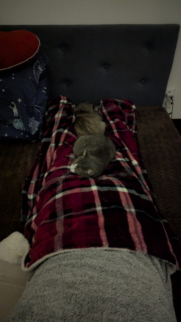 Здоровий сон. Коли нема світла й майже немає зв’язку, в соцмережах не посидиш. Тому трошки читаю книжку та дуже рано засинаю. У холоді несподівано добре спати.