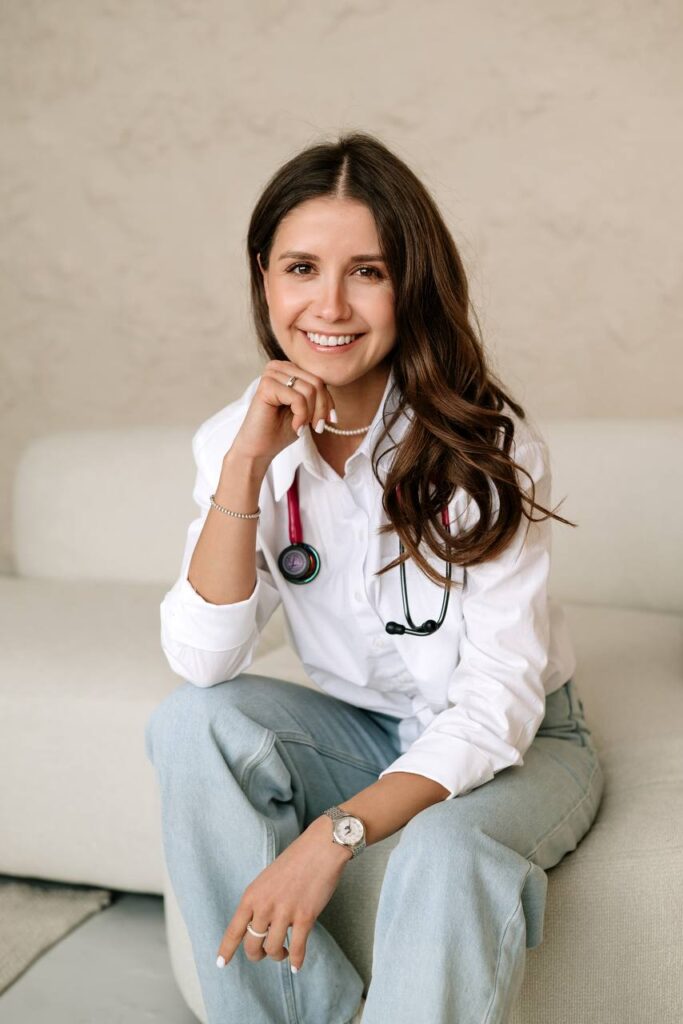 Катерині Погорєловій — 28 років, п’ять з них вона працює в педіатрії. «Мені важливо працювати там, де можна не просто лікувати, а підтримувати. Педіатрія — це не тільки про температуру і кашель. Це про сім’ю, тривоги, перші місяці материнства, виснаження, любов і безпорадність. Мені хотілося бути лікарем, який не лякає, а пояснює, підтримує і поруч у важкі моменти», — пояснює вона.