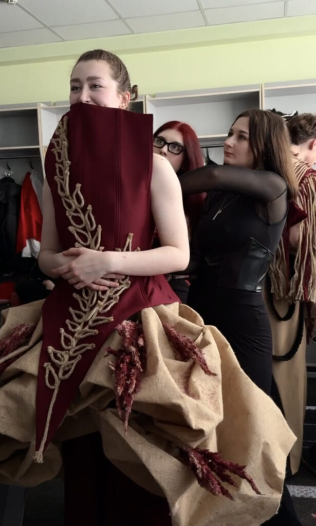 Історія колекції не обмежилася стінами університету. Все змінилося завдяки Людмилі Дихнич, завідувачці кафедри фешн і шоубізнесу, — вона бачила, скільки сил дівчата вклали в кожну деталь, і порадила режисеру премії Muzvar Awards Михайлу Харченку придивитися до їхньої роботи.