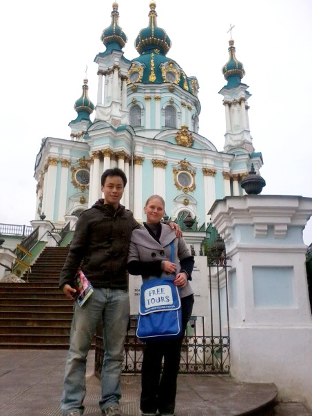 Работать экскурсоводом начала в компании Free Tours. Они проводят бесплатные туры для иностранцев на английском языке. Дважды в день экскурсии начинались с Майдана, где стоял гид с флагом компании. Туры длятся около двух часов по центру города: Золотые ворота, Софийская площадь, Андреевский спуск и обратно на Майдан. Хороший опыт для старта. Под конец я уже неплохо зарабатывала, потому что чем лучше проводишь экскурсию, чем больше выкладываешься, стараешься, тем больше дают чаевых. Хотя случалось, что вообще никто не приходил, и было немного обидно.