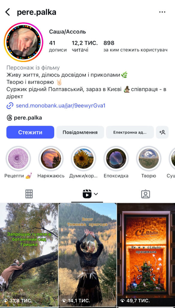 Саша давно грається з назвами, її інстаграм-нік «pere.palka» народився майже випадково.