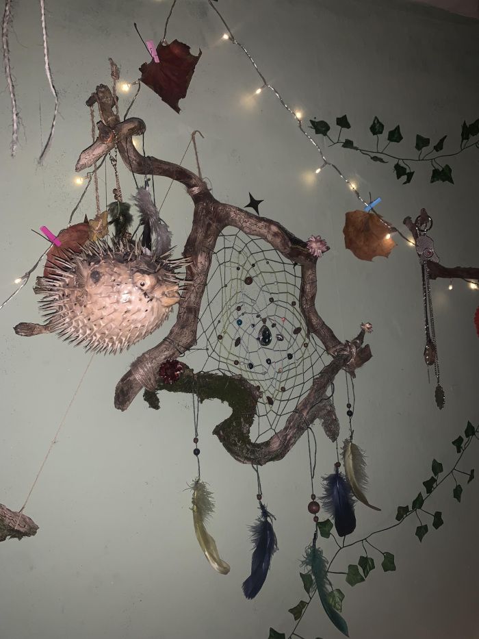 Після різних експериментів зі смолою та природними матеріалами Саша вирішила зробити щось більш об’ємне і символічне — свій перший ловець снів.