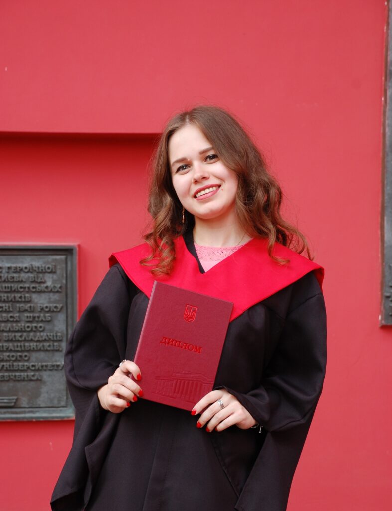 До речі, у 17 років я перемогла на всеукраїнському етапі конкурсу-захисту науково-дослідних робіт з історії (І місце) та з права (ІІ місце). Власне, за це я отримала стипендію Президента — для студентки-першокурсниці це була непогана фінансова підтримка.