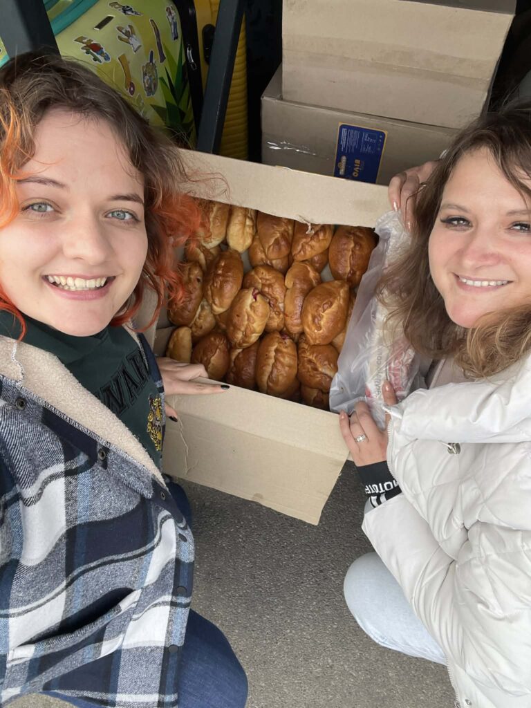 Оскільки ці «ростущі організми» постійно хочуть хочуть їсти, то ми придумали фішку: беремо з собою пʼять ящиків пиріжків. Нам печуть їх господині з Білої Церкві. Видаємо ті пиріжки прямо в поїздці.